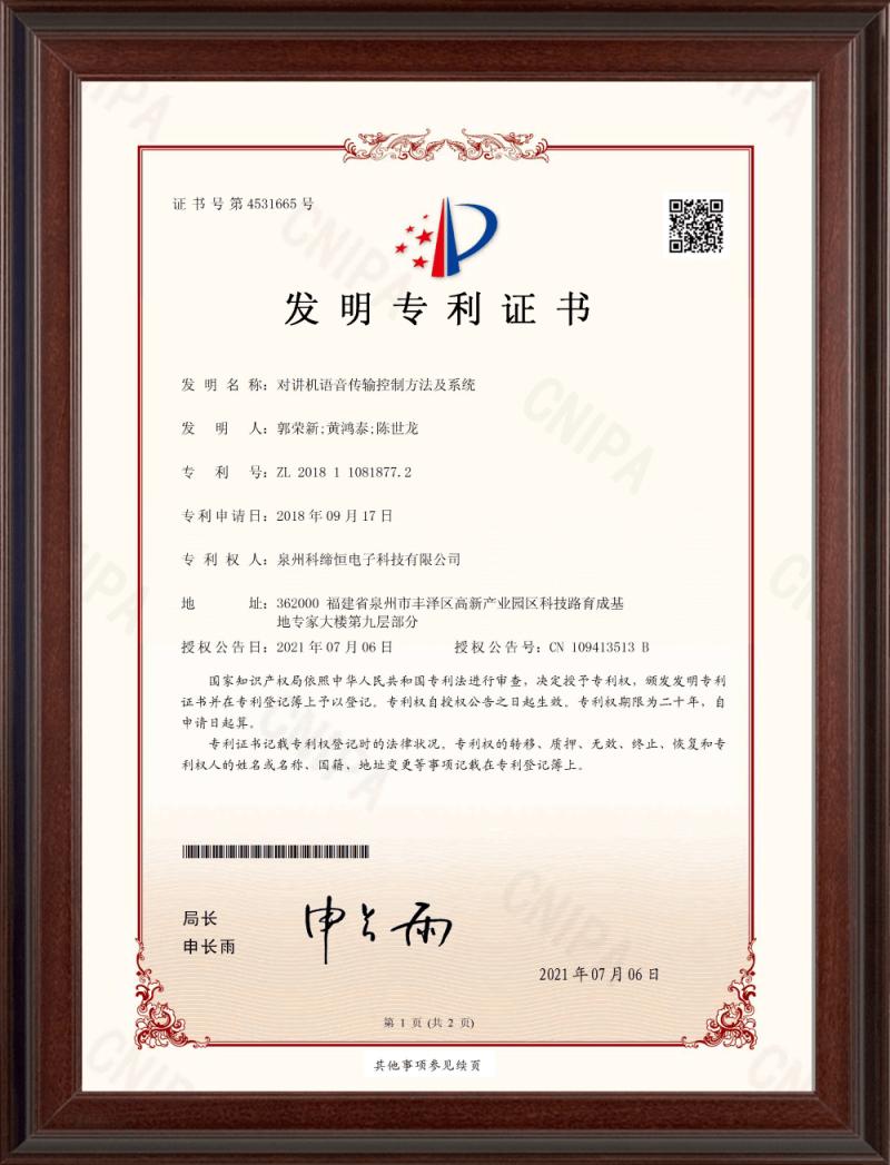 發(fā)明專利(對(duì)講機(jī)語(yǔ)音傳輸控制方法及系統(tǒng))